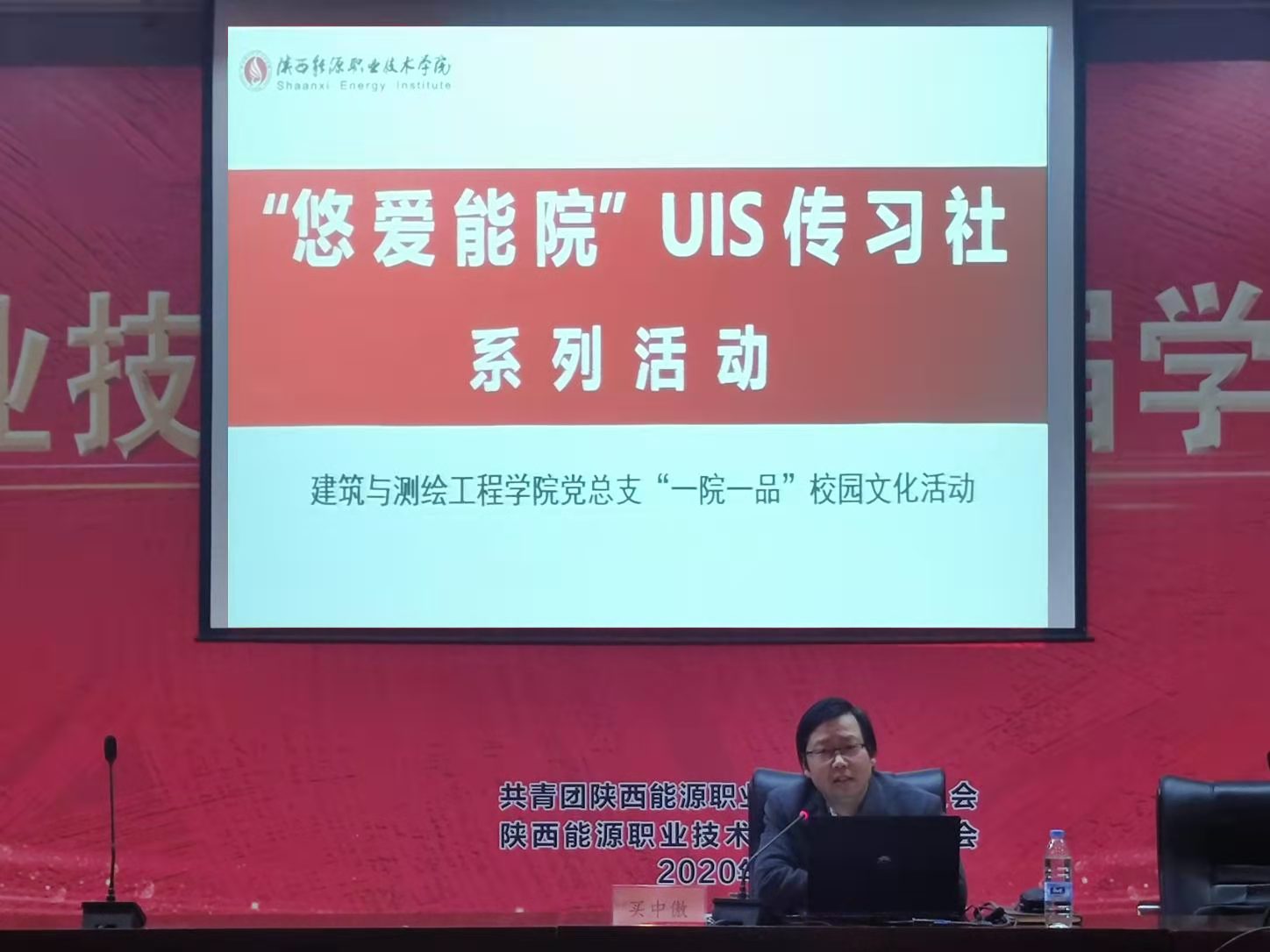 建测学院于12月9日下午19:00在实训楼六楼报告厅举办了题为《陕能院视觉形象设计与应用》的讲座,由学院艺术设计专业副教授买中傲主讲,学工办主任杨旸主持,2020级、2019级全体同学参与。