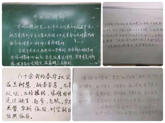 为热烈庆祝中国共产党成立100周年,深入学习贯彻习近平新时代中国特色社会主义思想,切实引导广大师生坚定理想信念,厚植爱国情怀。2021年5月,建测学院党总支结合一院一品校园文化活动,围绕学习“四史”“校史”主题,将传承“长征精神”与“走好新时代的长征路”相贯通,在全体教职工中开展“献礼建党100周年”暨“学习‘四史’‘校史’铭初心,筑梦青春迎百年”教师板书大赛活动。