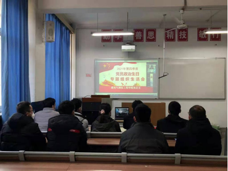2022年1月14日,按照学校党委工作安排和建测学院党总支年度工作计划,建测学院党总支召开21年第四季度“牢记政治生日、不忘入党初心”专题组织生活会,为9名党员庆祝他们的“政治生日”。由于疫情封校原因,本次活动采取线上线下互联互动模式,建测学院党总支线下参会人员9人,线上参会18人,共计27人。
