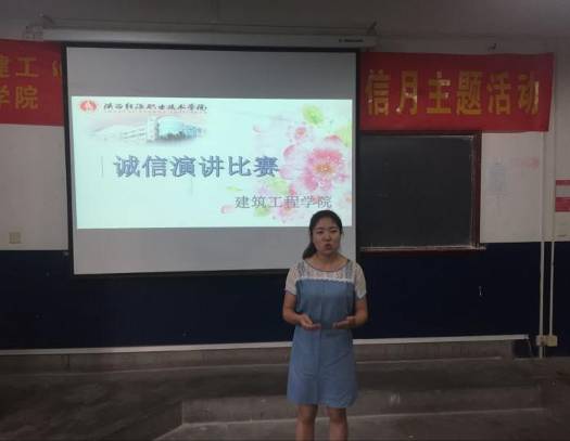 经过一番激烈的角逐,来自建工1701班的杨露同学摘得桂冠,评委老师为获奖选手颁奖,并鼓励同学们在以后的生活和学习中养成“诚信待人,诚信处事,诚信学习,诚信立身,诚信还贷”的良好习惯。至此,本次活动圆满结束。