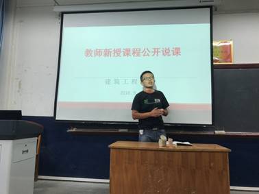 2018年9月2日建筑工程学院建工教研室组织2018-2019第一学期教师讲授新课公开说课,本次教研室教师讲授新课共涉及6门专业课,贺静静、康俊鹏、马立荣、相贝、程良5名教师,随后由专业教师和院领导进行了点评。通过公开说课,各位教师对所授新课内容侧重点把控到位,符合专业培养要求,新课内容准备充足,讲授有条理,教学准备充足。通过此次说课活动,确保了教师授新课的教学质量保障,在教学过程中更加自信。