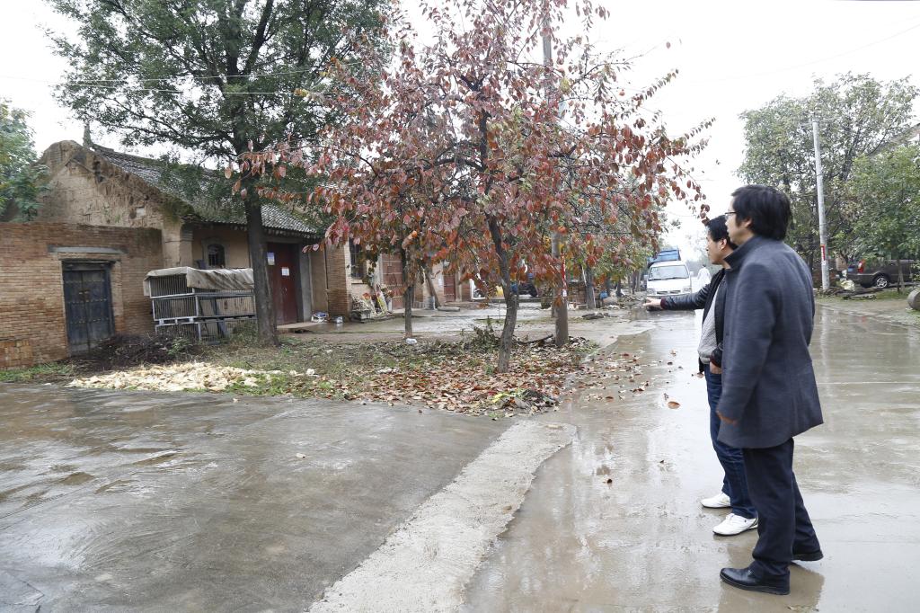 随后,在城建办杨主任、办公室刘主任和驻村干部的带领下,建工学院曹书记一行冒雨前往三王村一组、二组、四组街道及五保户住房建造工地实地考察,了解该村的道路、房屋、绿化等实际情况,并前往店张城建办收集了三王村的整体规划图纸,并就该村的规划设计情况与杨主任交换了意见,为后续的工作开展准备第一手资料。