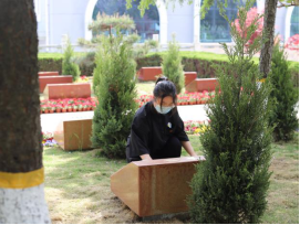 随后,祭扫活动开始,全体师生来到和平广场静默瞻仰,并在和平鸽碑前逐一献花;5名师生代表擦拭烈士墓碑并行三鞠躬礼。
