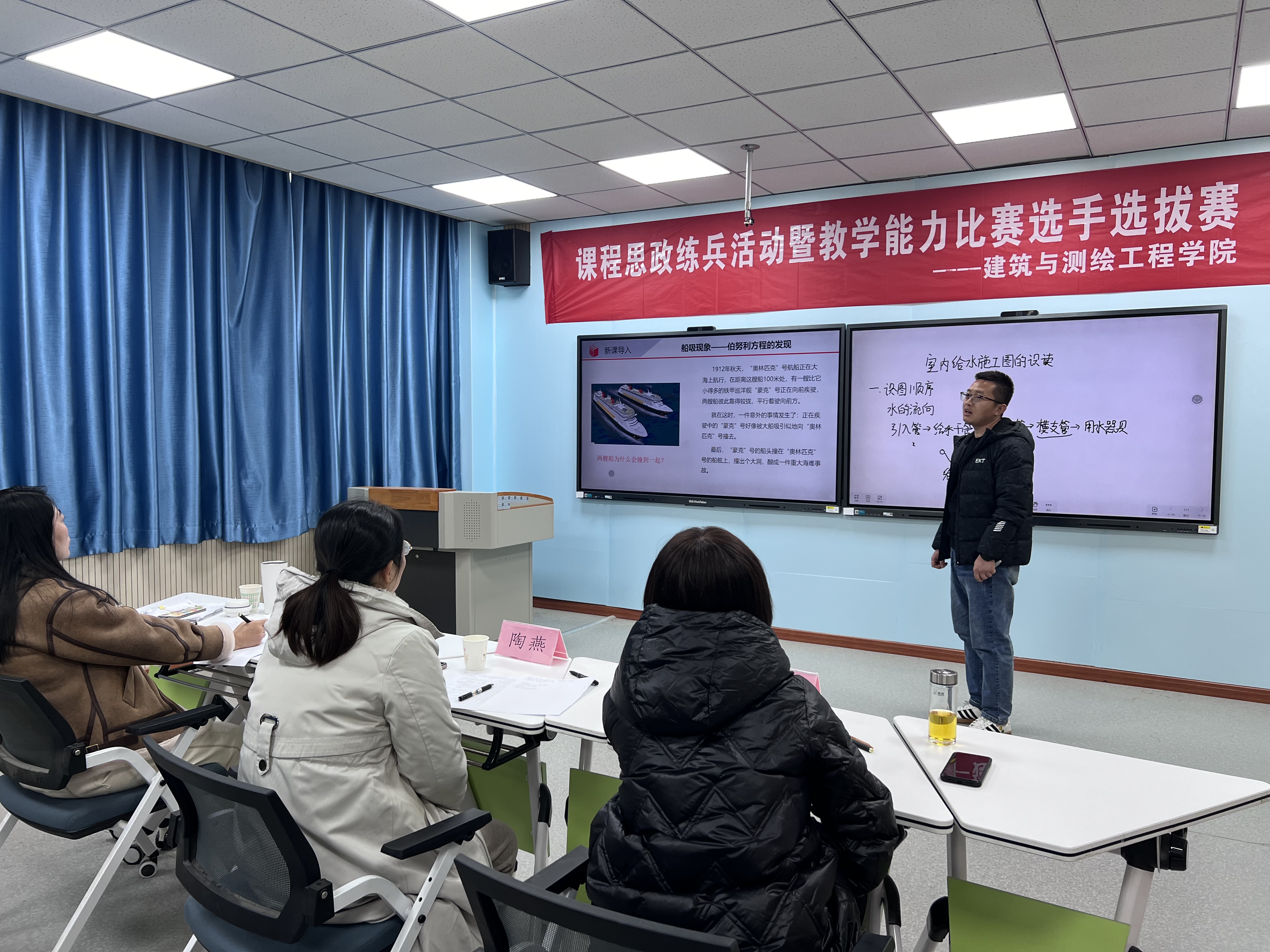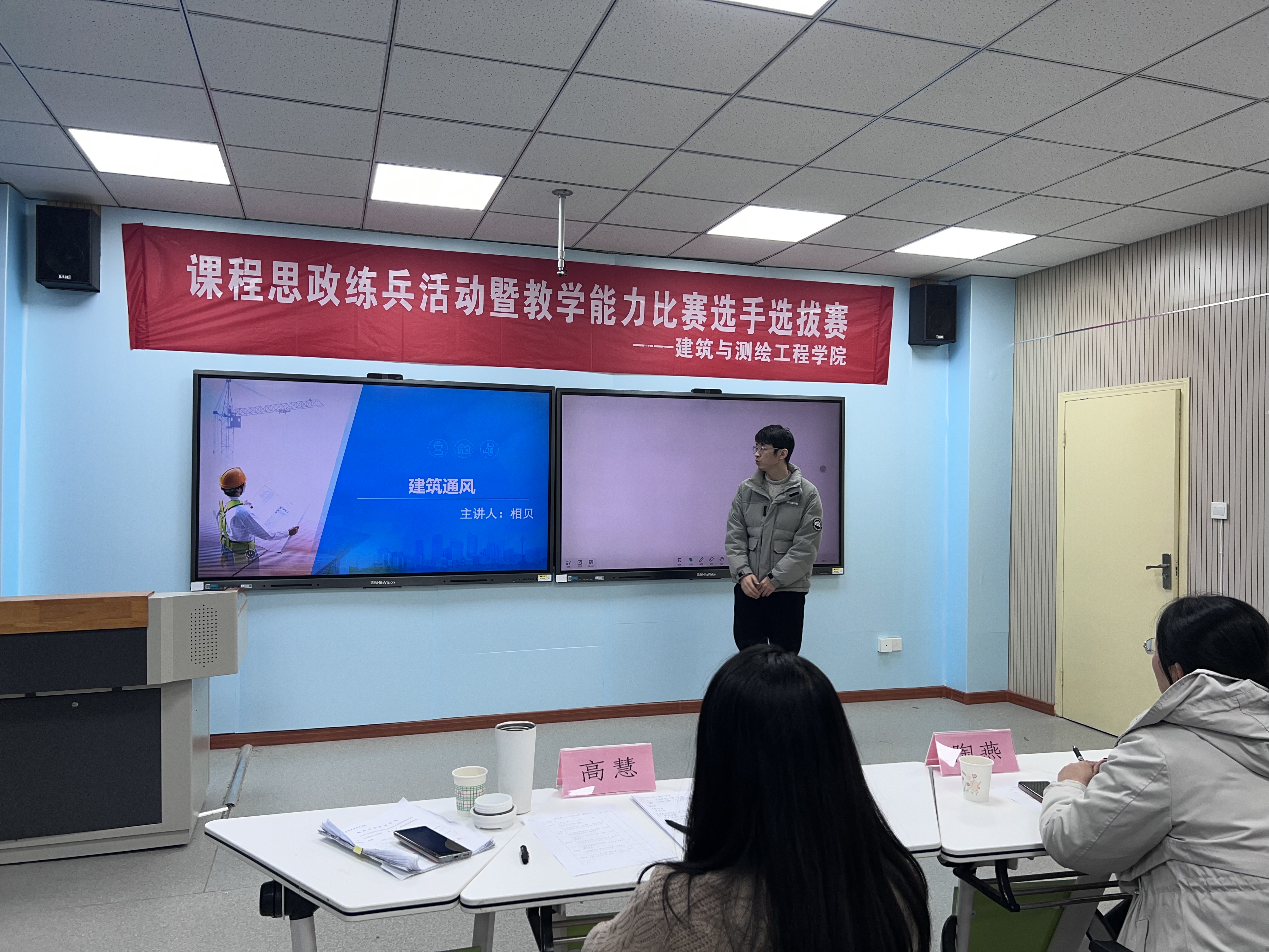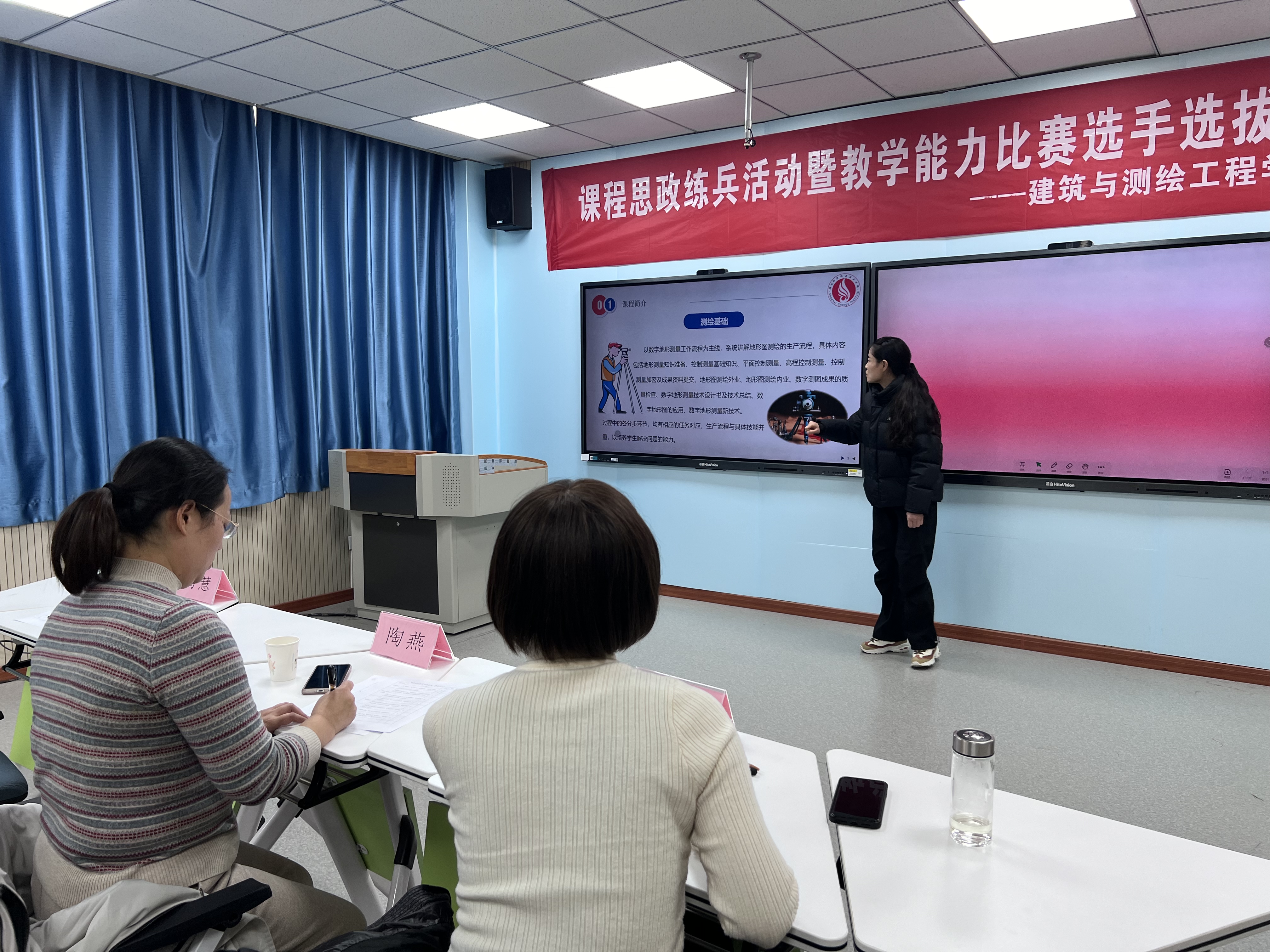 为深入学习贯彻习近平新时代中国特色社会主义思想和习近平总书记重要指示精神,落实全国、全省高校思想政治工作会议精神,加大“以练强技”“以赛促教”力度,进一步提升我院专业课程思政融入及教学质量水平,12月18日下午,建测学院于教学楼509教学演播室开展课程思政大练兵暨教学能力比赛选手选拔活动。实践教学中心主任陶燕、马克思主义学院副院长高慧、建测学院院长王洁、参赛教师及学院教师参加了本次活动。活动由建测学院院长王洁主持。