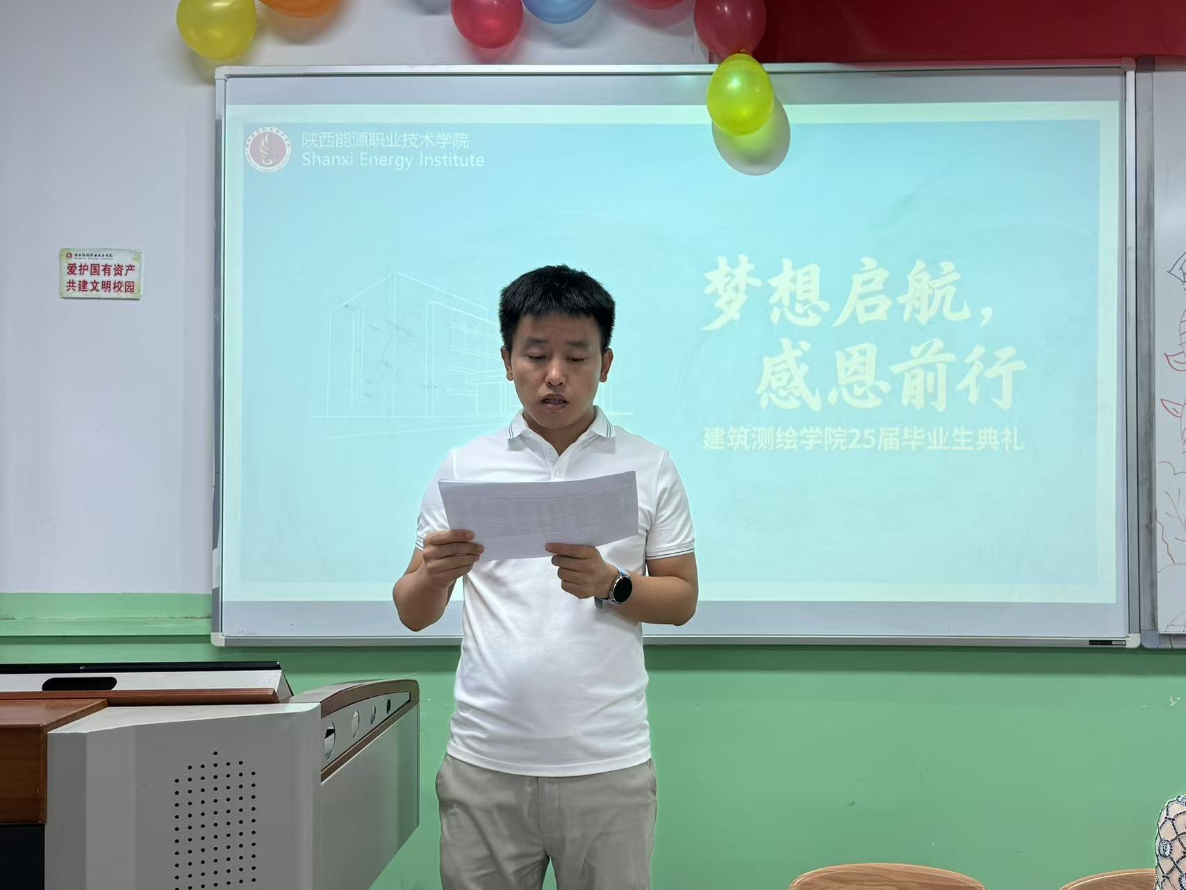2025年7月7日,阳光洒满校园,建筑测绘学院在115教室举办了2025届毕业典礼。这不仅是一场告别,更是毕业生们踏上新征程的起点。学院领导、老师和毕业生们齐聚一堂,共同回顾往昔,展望未来。典礼由学工办主任张嬉主持。