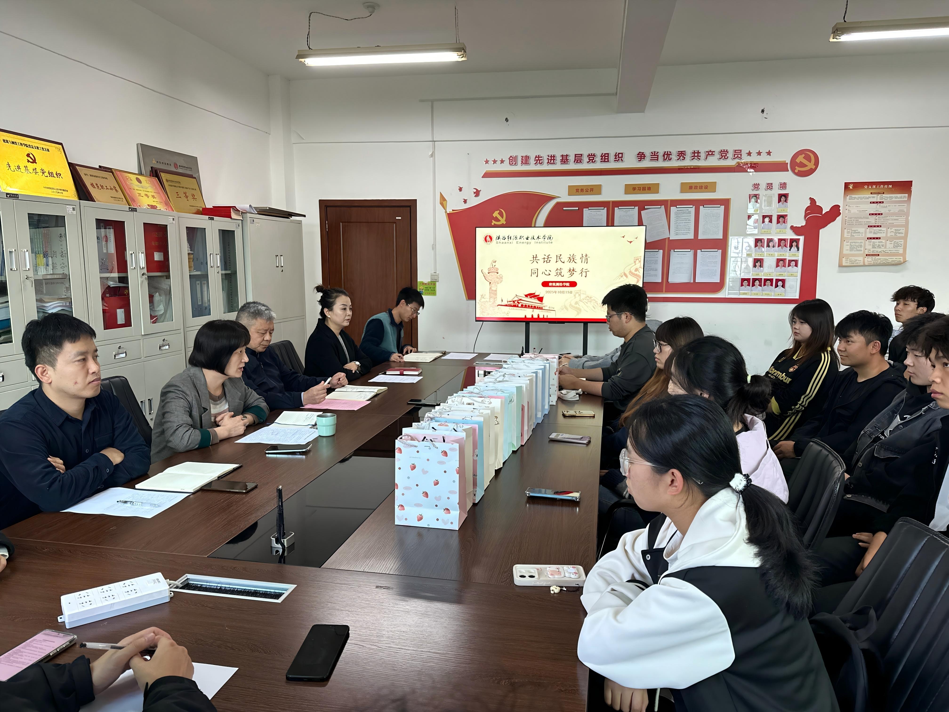 为深化民族团结教育,精准服务少数民族学生成长,10月15日下午14:10,建筑测绘学院于办公楼515会议室召开“共话民族情·同心筑梦行”少数民族同学座谈会。学院党总支书记肖明宇、院长王洁、副院长张京,学工办主任张嬉、综合办主任鬲亚蕾、教学办主任杨旸,学工办全体辅导员、班主任代表及各民族学生代表参会。