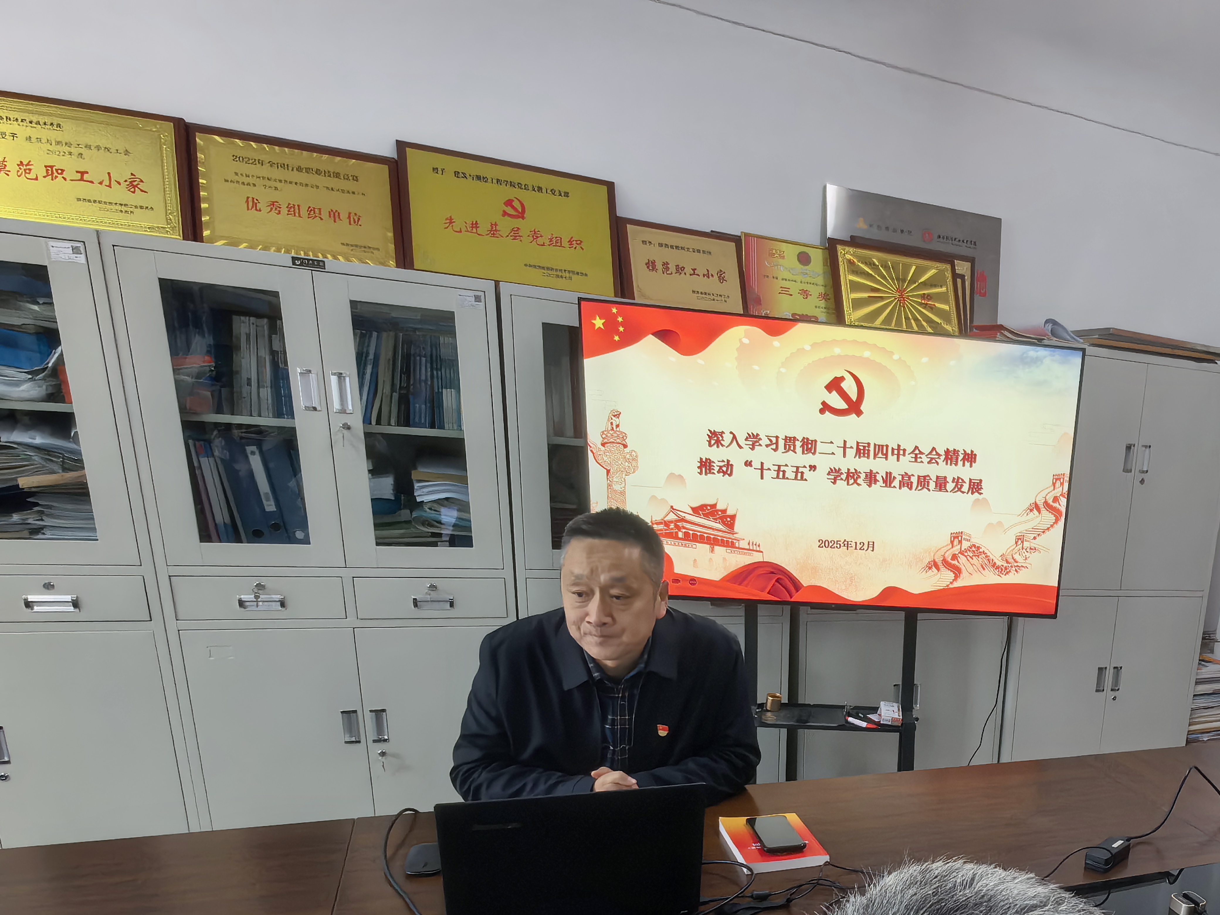 宣讲过程中,他系统解读了二十届四中全会精神核心要义和“十五五”规划建议部署,结合学校发展的实际,提出以创建特色鲜明职业技术大学为总目标,实施“1234 20”攀登计划,明确办学能力的提升、“双高”建设、职教本科创建三大核心任务。同时,还介绍了学校咸阳校区操场用地规划等未来建设构想,为校园功能完善、办学条件提升描绘了清晰蓝图。