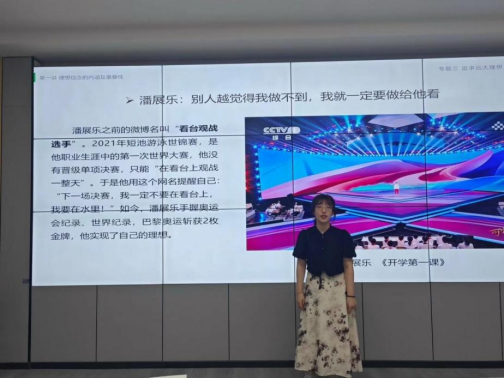 此次备课会主要围绕“思想道德与法治”课程专题三第一讲“理想信念的内涵及重要性”展开。在导入部分,马悦引用了改编版《错位时空》,通过革命先烈于国家危难之际挺身而出,毫无保留献出自己的青春乃至生命的故事,引出本讲的主题“理想信念”;结合中国人“奔月梦”的实现历程,尤其是从嫦娥一号到嫦娥六号,我国在月球探测领域十余年的非凡成就,阐述“理想的超越性”;通过电影《热辣滚烫》杜乐莹遭受挫折之后,决心改变自己,凭着“要赢一次”的信念支撑,超越自我,找到人生意义的故事,阐述“信念的支撑性”;在“理想信念是精神之钙”部分,分别结合航天员桂海潮、红军长征、奥运冠军潘展乐、院士王志珍的故事阐述理想信念的作用。