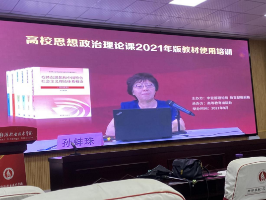 因疫情防控工作要求,此次培训会为线上学习培训内容主要为《毛泽东思想和中国特色社会主义理论体系概论》《思想道德与法治》两门主干课程,多位教材编写课题组专家分别对2021版新教材进行了解读,涉及到新教材修订后的指导思想、基本精神、核心内容、修订重点和难点等