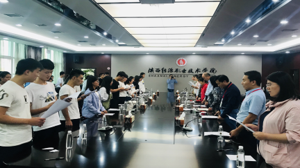 接下来,化学工程学院学工办主任舒全安代表教师发言。首先,舒老师对学生的交流发言做了积极的评价。每一位发言的学生都下足了功夫,准备了丰富的材料,同学们从理论到实践、从个人感受到实践所见所闻、从感性到理性谈了对爱国的感受。其次,舒老师由我和我的祖国引伸到爱国主义,结合学校工作实际谈了他对爱国主义的理解。爱国主义是中华民族优秀传统文化的精髓部分,中华民族上下五千年的历史长河中一直贯穿着爱国主义精神。爱国、爱校、爱家三者在本质上统一的,家庭、学校都是组成社会的一个基本单位,爱校、爱家也是爱国的表现。同学们作为陕西能源职业技术学院的一份子,要尽自己最大努力为陕能院的发展贡献力量。