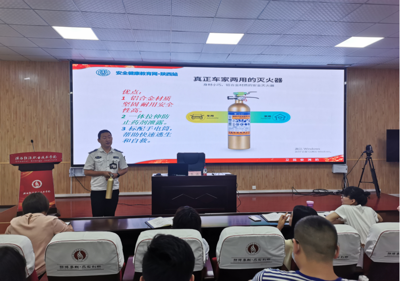 会上,张教官借助PPT和视频,生动形象地向大家展现了几起火灾事故,继而深入分析火灾发生的原因。他指出,消防意识缺失是火灾发生的根本原因,呼吁全体教师在身边展开一次消防隐患排查,防患于未然。同时他为大家讲述了如何选择灭火器、如何使用灭火器、如何鉴别灭火器真假、家庭应急救援防护器材配备等知识,并就日常工作、学习和生活中面对火灾发生时的具体处理办法做了详细的讲解说明,当场讲解演示了水基灭火器、电击应急警示器等消防器材的使用方法。