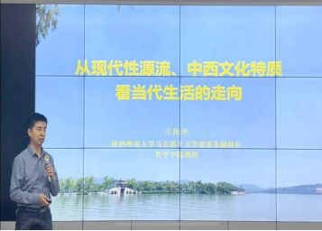 首先,庄振华教授结合习近平总书记关于“两个结合”的重要论述对本次讲座的主题作简要介绍。他主要从“现代性源流”、“中西文化特质”和“当代生活的走向”三个方面阐述了如何从现代性源流、中西文化特质看当代生活的走向。他指出,我们在对马克思主义与中国实际、中华传统文化的理解上,都要打开视野,不能局限于20世纪以来的西方浪漫主义眼光或技术理性眼光,而要从近代早期以来的“大理性”眼光,采众家之所长,才能为当代生活找到更宽阔、更明亮的未来。