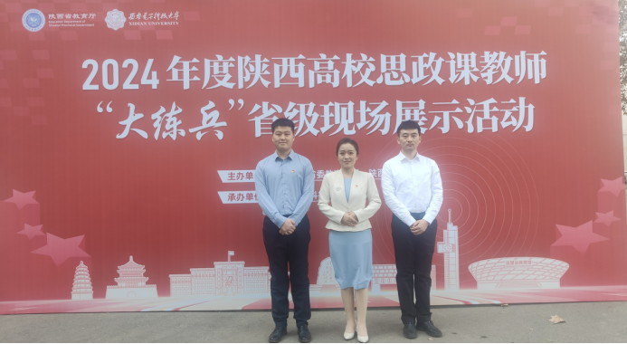 近日,由中共陕西省委教育工委、陕西省教育厅主办的2024年度陕西高校思政课教师“大练兵”省级现场展示活动在西安电子科技大学成功举办,经过激烈角逐和评委专业评审,我校马克思主义学院教师苏妮、仲文强、韩宏博及学生任蕊绚喜获本次比赛一等奖。