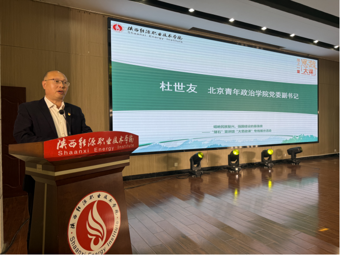 本次活动由陕西能源职业技术学院和北京青年政治学院共同 我校马克思主义学院、学工部、团委联合协同组织,特别邀请北京青年政治学院党委副书记杜世友、团委书记何杨率领“燧石”宣讲团师生莅临我校开展交流。我校党委副书记田昊、学工部部长冯超、团委副书记郭少婷与师生代表、西藏阿里班学生等约300人共同参与,聆听宣讲并进行互动。此次专场展示活动旨在通过“大思政课”形式,深化校际合作,凝聚青年力量,为民族复兴与强国建设注入青春动能。
