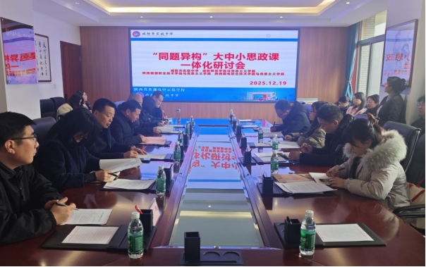 为全面贯彻党的教育方针,落实立德树人根本任务,切实发挥思政课立德树人关键课程作用,2025年12月19日上午,我院联合咸阳市实验中学、咸阳师范学院、陕西邮电职业技术学院在咸阳市实验中学勤政楼315开展“同题异构”大中小学思政课一体化研讨会,我院教师李春霞进行课程展示,十余名教师参会。