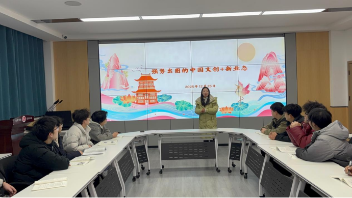 为拓宽青年学子对文化创意产业的认知,激发创新思维,12月25日,马克思主义学院在博约堂举办了第三十四期菁英论坛活动,李苗苗老师围绕“中国文创+新业态”的发展脉络与未来趋势展开分享,来自信息商务学院的20余名学生参加。