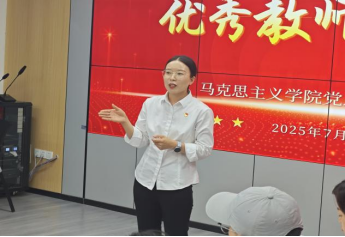 作为党员教师,她们用扎实的教学功底与炽热的教育初心,生动诠释了“一名党员就是一面旗帜”的深刻内涵。张晗颖老师首先上台分享:“作为党员教师,我们更要把‘为党育人、为国育才'的使命刻进教案里。我始终牢记教材是落实立德树人根本任务的核心载体,每一堂课都以教材为根、以信仰为魂,让党的创新理论真正走进学生心田。”她的分享,正是党员教师“学高为师、身正为范”的生动注脚。李苗苗老师的发言同样引发共鸣:“党员教师的课堂,就该是‘问题导向'的初心课堂。我坚持从学生思想实际出发设计教学,用‘小问题'撬动‘大道理',让思政课既接‘天线'又接‘地气'。”这种将党员责任融入教学改革的实践,正是新时代党员教师带头践行党的教育方针的鲜活写照。她们以课堂为阵地、以学生为中心,用“讲政治、钻业务、爱学生”的实际行动,让党徽在三尺讲台熠熠生辉,树立起“党员先锋”的标杆典范。