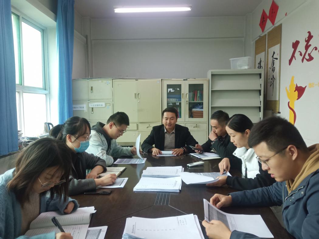首先辅导员常露老师介绍本次国家励志奖学金评审办法,随后全体辅导员对申请国家励志奖学金的同学所提交材料进行核查与评审,检查是否符合申请要求,并对符合要求的学生进行初步排序。