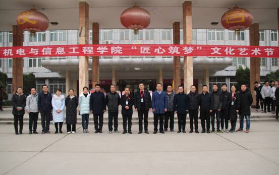 为切实加强校园文化建设,传承和弘扬“工匠精神”,机电与信息工程学院“匠心筑梦”文化艺术节于12月16日中午11点40分在教学楼前开幕。校党委书记令狐培选,党委副书记、校长刘予东,机信学院党政领导和师生代表参加开幕式。