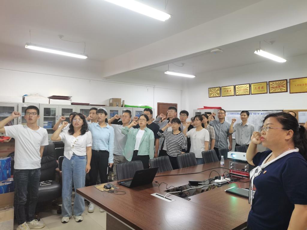最后,所有老师在副书记李粒的带领下进行了庄严宣誓:“我志愿做一名光荣的人民教师,我庄严宣誓:忠于党的教育事业,贯彻党的教育方针,履行教师的神圣职责,做有理想信念、有道德情操、有扎实学识、有仁爱之心的好老师,爱国守法、忠于职守教书育人、关爱学生,严谨治学、勇于创新,为人师表、甘于奉献,为学生德智体美劳全面发展奉献智慧与力量,为党和人民的教育事业而努力奋斗!”。