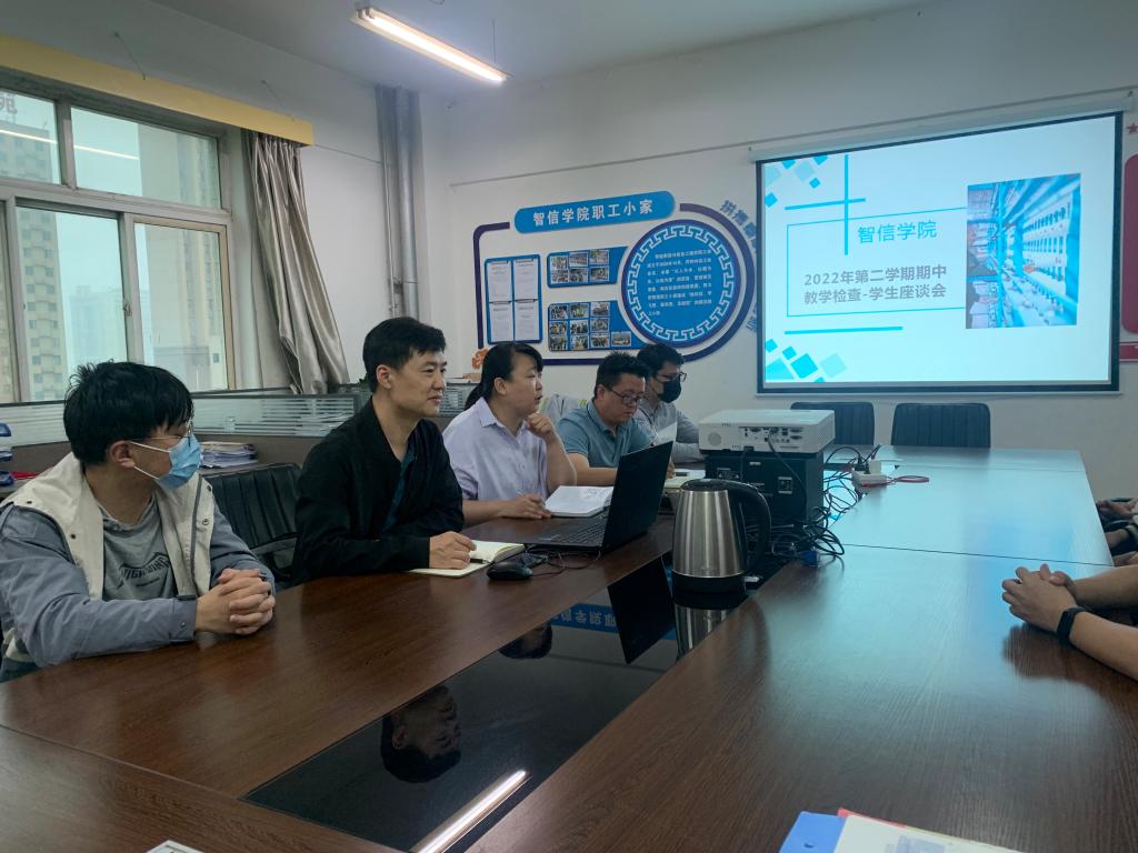5月12日下午,学院按照专业召开本学期期中教学检查学生座谈会。智信学院党总支副书记冯帅、副书记黄俊梅、院长李炜怿、副院长贾永军、教学办主任李智、各专业教研室主任、教学秘书王茜及20、21级学生代表参加座谈。