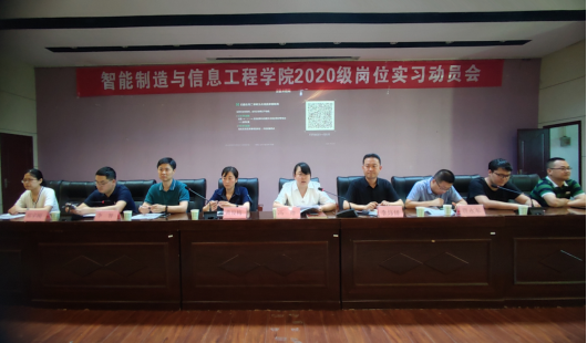 6月23日,智能制造与信息工程学院2020级学生岗位实习动员大会在实训楼六楼报告厅举行。院长李炜怿、党总支副书记冯帅、副院长贾永军、党总支副书记黄俊梅、教学办主任李智、学工办主任郝宇刚、各专业教研室主任、实习指导老师、班主任及518名2020级学生参加会议,会议由智信学院综合办主任王茜主持。