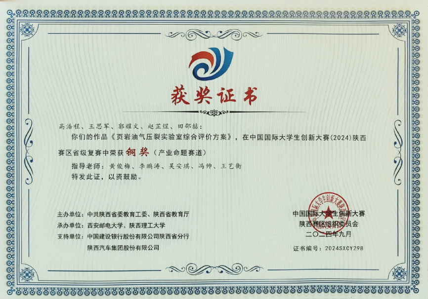 近日,中国国际大学生创新大赛(2024)陕西赛区省级复赛获奖名单揭晓,我院在本次大赛中表现出色,共获得金奖1项、银奖2项、铜奖2项,1名教师荣获“受表扬指导教师”荣誉称号。