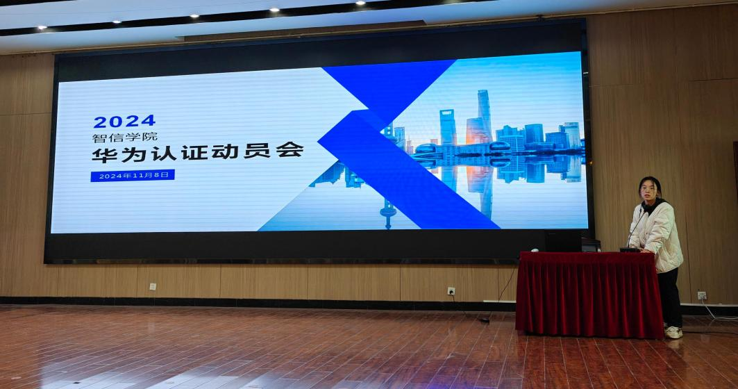 为深化校企合作,培养学生的ICT技术能力,全面提升学生就业竞争力,智信学院于2024年11月8日在六楼报告厅召开了华为ICT认证动员会。智信学院院长贾永军、企业代表运营经理赵林、信息技术教研室及应用电子教研室教师代表和学生参加了此次会议,会议由肖敏敏老师主持,为学院全面开展华为认证相关工作正式拉开帷幕。
