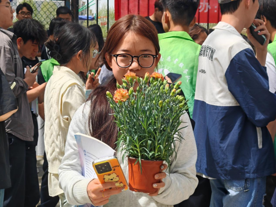 同学们热情高涨,不一会儿,现场便排起了长龙。大家秩序井然地转动幸运大转盘,期待着与心仪的绿植邂逅。领取绿植后,同学们认真地登记信息,整个过程有条不紊。手捧绿植的那一刻,同学们脸上洋溢着喜悦,仿佛捧着一份珍贵的礼物。一位同学兴奋地说:“能领养到属于自己的绿植,我太激动了!我一定会精心呵护它,陪伴它一起茁壮成长。”