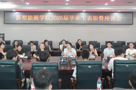 七月流火,骊歌渐起。7月8日上午8时30分,新型能源学院2025届毕业生表彰暨座谈会在办公楼三楼第三会议室温情启幕。本次会议以“知行致远 同心筑梦”为主题,学院党总支副书记冯帅、孟卓,任课教师、毕业生班主任、辅导员以及优秀实习生、校友联络员、校友年级理事、学生党员和各班学生代表共计70余人参加,在盛夏的光影里共话离别与希冀,同绘成长与担当。