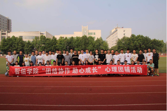 为深贯彻落实我校第五届阳光护航心理育人季实践活动,加强疫情期间返校学生心理健康教育工作,维护学生心理健康,增强学生心理素质,6月11日下午15:30分,智信学院在操场开展“团结协作 助心成长”心理团辅活动,全院心理委员、团学干部共48人参加了此次活动,此次活动由智信学院心理辅导员景安琪老师带领大家完成。