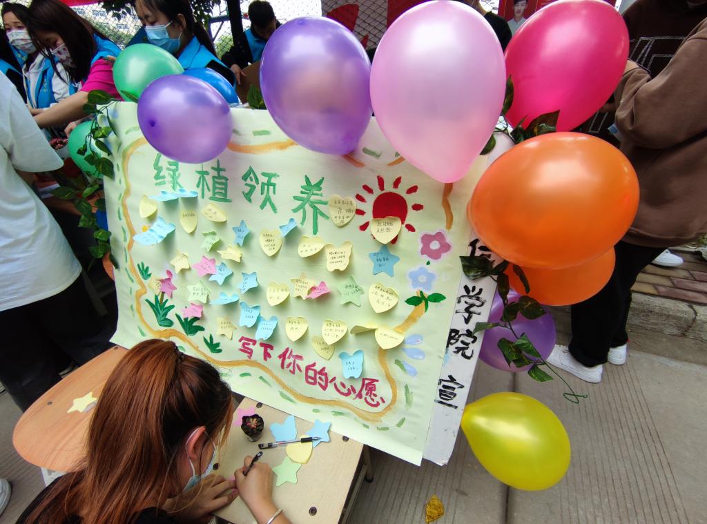 活动前,智信学院在官微平台青春智信推送活动文案进行宣传,同学们在微信朋友圈积极转发集赞。活动现场,大家热情高涨,早早地排起了长队,在现场志愿者的引导下,选择自己喜欢的绿植、签订领养协议并进入QQ交流群。领养绿植后,同学们在宣传板上用便利贴许下自己的心愿,纷纷表示会悉心呵护,分享绿植养护过程,期待自己的绿植成为生命最绽放的那棵。