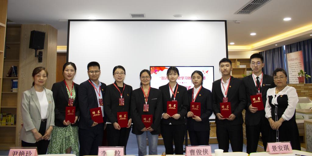 启动仪式上,党总支宣传委员景安琪宣读《智信学院“智青春”党史学习教育宣讲团活动方案》;曹俊侠书记、李粒副书记为宣讲团成员颁发聘书、佩戴胸牌;宣讲团成员代表何诗婷同学做表态发言。