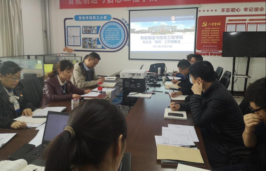 为全面落实“双创”工作,努力争创先进,加快“双高”建设,促进我院党建工作创先争优。10月25日上午10点,智信学院党总支在办公楼509召开党建“双创”工作部署会,智信学院党总支书记曹俊侠、党总支副书记院长李炜怿、党总支副书记李粒、副院长贾永军及智信学院三办主任、各支部书记、支委参加会议,会议由李粒主持。