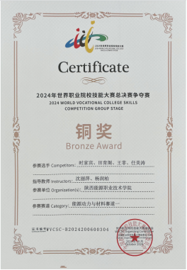 2023年全国第二届职业技能大赛陕西省选拔赛可再生能源赛项中,荣获陕西省一等奖1项;
