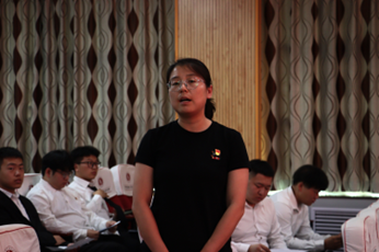 大会在激昂的国歌声中正式开始。9名发展对象依次上台,向党组织汇报个人情况。他们结合自身经历,阐述对党的认识、入党动机,详细介绍本人履历、家庭和主要社会关系,认真说明需要向党组织汇报的问题,表达出渴望加入中国共产党,为党的事业奉献力量的决心。入党介绍人从思想政治学习的深度,到参与学生活动的积极性,再到日常生活中的品德修养等方面对发展对象进行了全面且客观的评价,明确表达了是否同意其加入中国共产党的意见。经无记名投票表决,大会一致通过接收康璇等9名发展对象为中共预备党员的决议。
