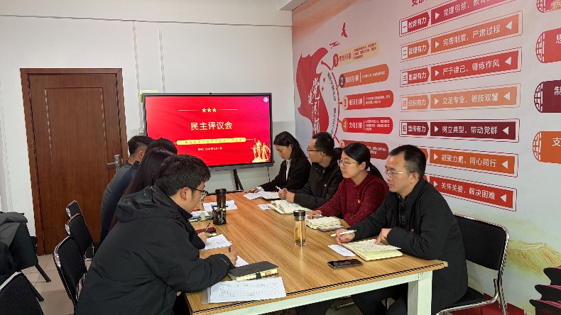 组织生活会后,会议转入民主评议党员环节,全体党员在此期间逐一汇报2025年度承诺践诺情况。王倩同志详细说明评议流程、标准及要求,强调要客观公正、实事求是开展评议,与会党员认真填写民主测评表,规范行使民主权利。党员们对照2025年度公开承诺,梳理践诺成效、查摆不足、明确改进方向,进一步强化党员意识。支部将结合党员日常表现、谈心谈话及践诺成效综合评定,确保评议结果真实有效、导向鲜明。