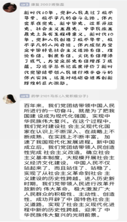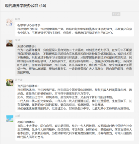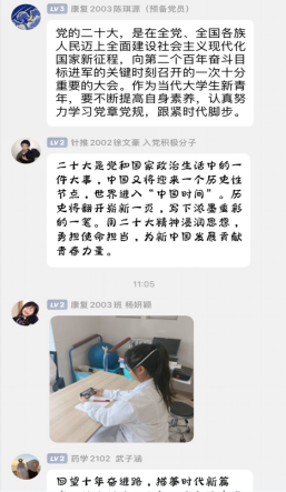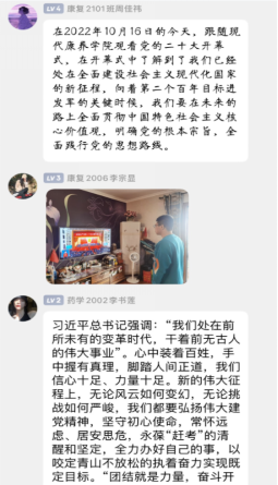 学生干部、积极分子、预备党员及广大学生观看学习后,也纷纷在班级群内发表心得体会: