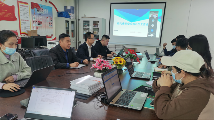 现代康养学院通讯员教师在会议室进行业务工作培训