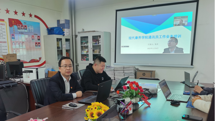 为了进一步规范学院意识形态工作和推动学院教育教学工作的宣传,现代康养学院在教师队伍中挑选合适人选,组建了通讯专项工作小组,于11月4日下午,进行了通讯员工作的业务培训。参加培训的有现代康养学院党总支书记唐恭贺、三办主任、全体坐班人员及各教研室推荐的教师通讯员,线上线下参会20余人,活动由党总支宣传委员、教工支部书记、综合办主任张多主持。