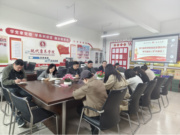 2024年4月8日,现代康养学院党总支理论中心组在办公楼409召开集体学习会议,本次会议主题为“学思践悟新思想,奋楫笃行新启程”。学习会由党总支书记唐恭贺主持,学院党总支理论中心组全体成员参加会议。