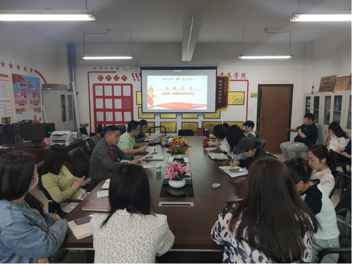 4月24日下午,现代康养学院党总支书记唐恭贺通过线上、线下形式在办公楼409会议室以“学习纪律处分条例推动党风廉政建设”为题为学院全体教师讲授专题党课。