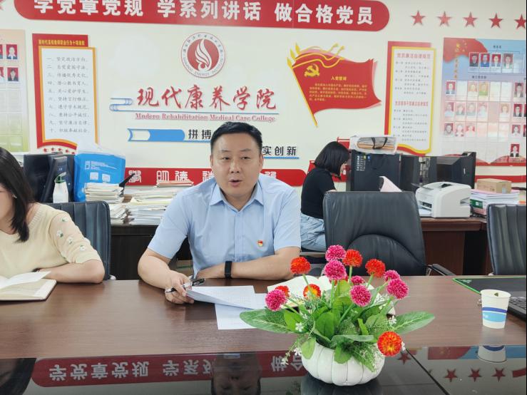 为提高党员干部的党性修养和纪律观念,落实立德树人的根本任务,以学校双高建设的战略目标为指引,聚焦学院重点工作,推进学院稳健发展,5月15日下午,现代康养学院在409会议室以线上、线下相结合的形式,召开党纪学习教育暨“党风、作风、教风、学风”(以下简称“四风”)建设工作推进会。学院党政领导班子、全体党教师参加会议,会议由学院党总支书记唐恭贺主持。