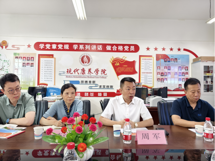 现代康养学院党总支书记唐恭贺详细介绍了康养学院的基本情况、专业特色、学科建设等相关内容。谈到,将医院资源全方位融入到学校人才培养方案的修订、学生实习就业、师资队伍建设中来,是院校合作培养高质量医疗卫生人才的需要,希望能促成双方深入合作。