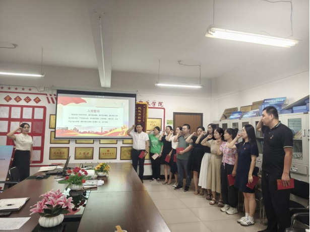 学院党总支书记唐恭贺以及教工党支部书记赖菁华为支部全体党员教师赠送了政治生日贺卡。随后,在教工党支部书记赖菁华的带领下,全体党员重温入党誓词,回忆入党初心,牢记初心使命。